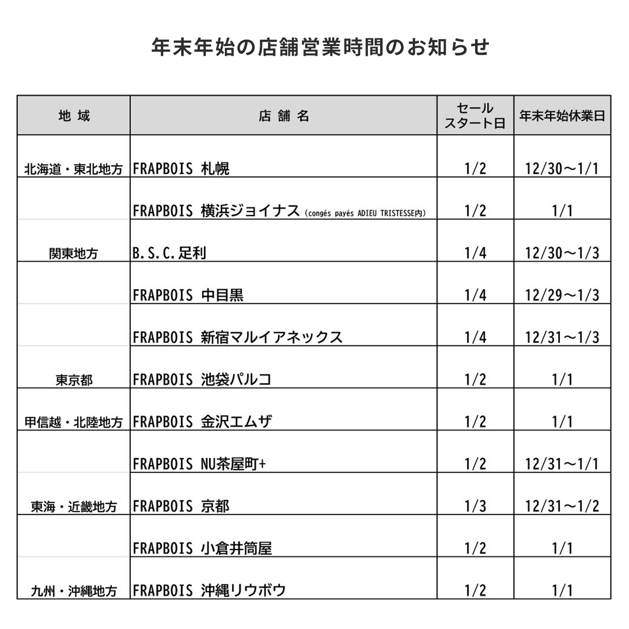 年末年始の各店舗の休業日およびセールスタート日につきましてご案内いたします。